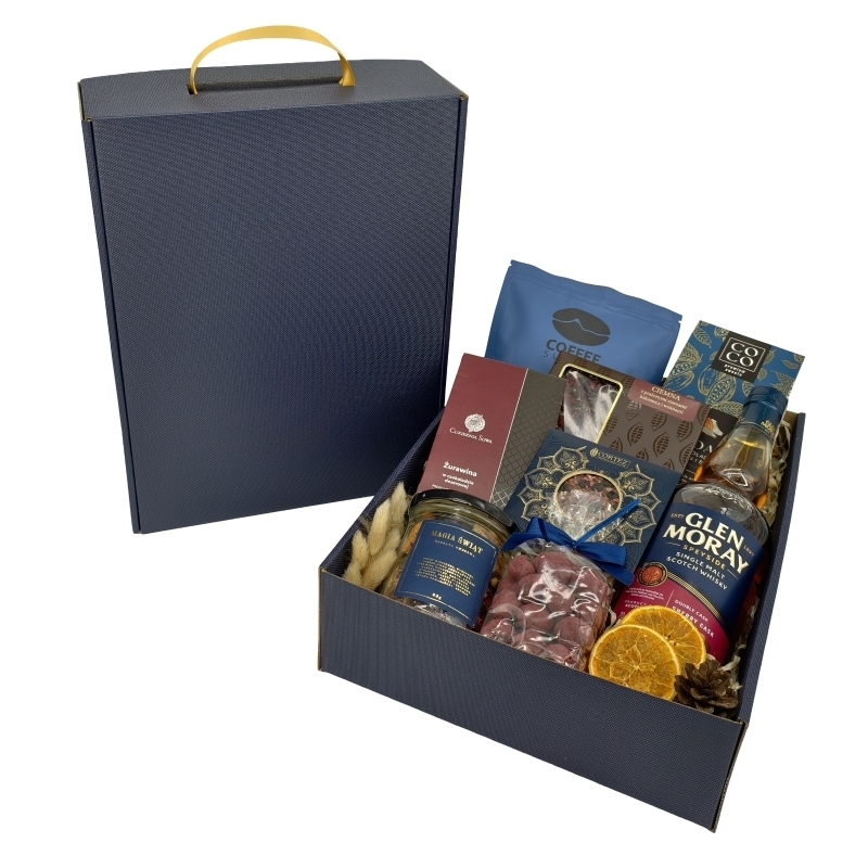 Aromatyczne Migdały to luksusowy zestaw upominkowy, który łączy szkocką single malt Glen Moray, egzotyczną kawę z Indii oraz bogaty wybór migdałów w różnych odsłonach czekoladowych. Idealny dla koneserów ceniących orzechowe aromaty, prestiżowe alkohole i wyrafinowane smaki.