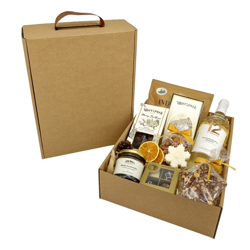 Biały Puch to wyrafinowany zestaw upominkowy, który łączy włoskie wino białe Malvasia, unikatową kawę z Nepalu oraz ekskluzywne praliny w złotym opakowaniu. Idealny dla osób ceniących delikatne, białe smaki, wyjątkowe kompozycje i puszystą atmosferę zimowego puchu.