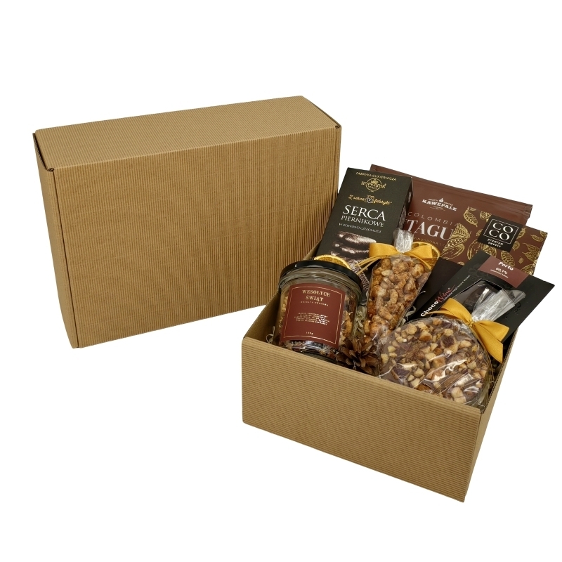 Kryształowa Elegancja to kompozycja dla miłośników wyrafinowanych smaków i estetycznych detali. Znajdziesz tu ręcznie robione słodycze, wyjątkową herbatę i aromatyczną kawę – całość zapakowana z dbałością o każdy szczegół.