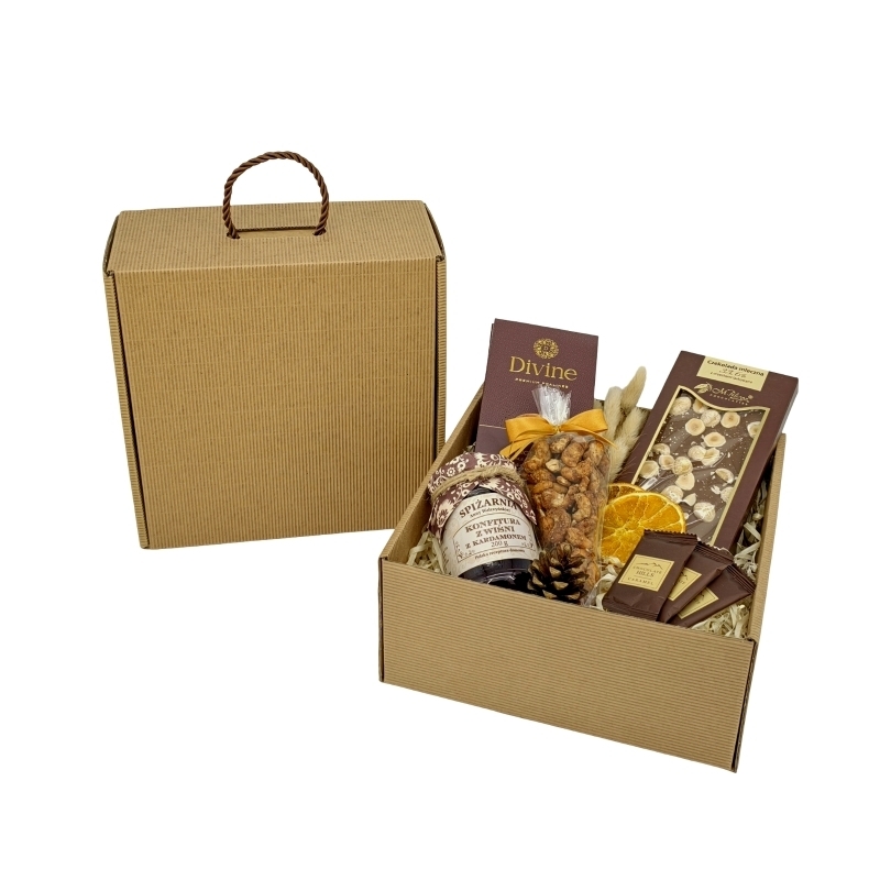 Lśniąca Harmonia to wyrafinowany zestaw prezentowy, który łączy w sobie słodycz, nuty przypraw i naturalne akcenty świąteczne. Doskonały wybór dla klientów, partnerów biznesowych i bliskich, którzy cenią smak i estetykę.
