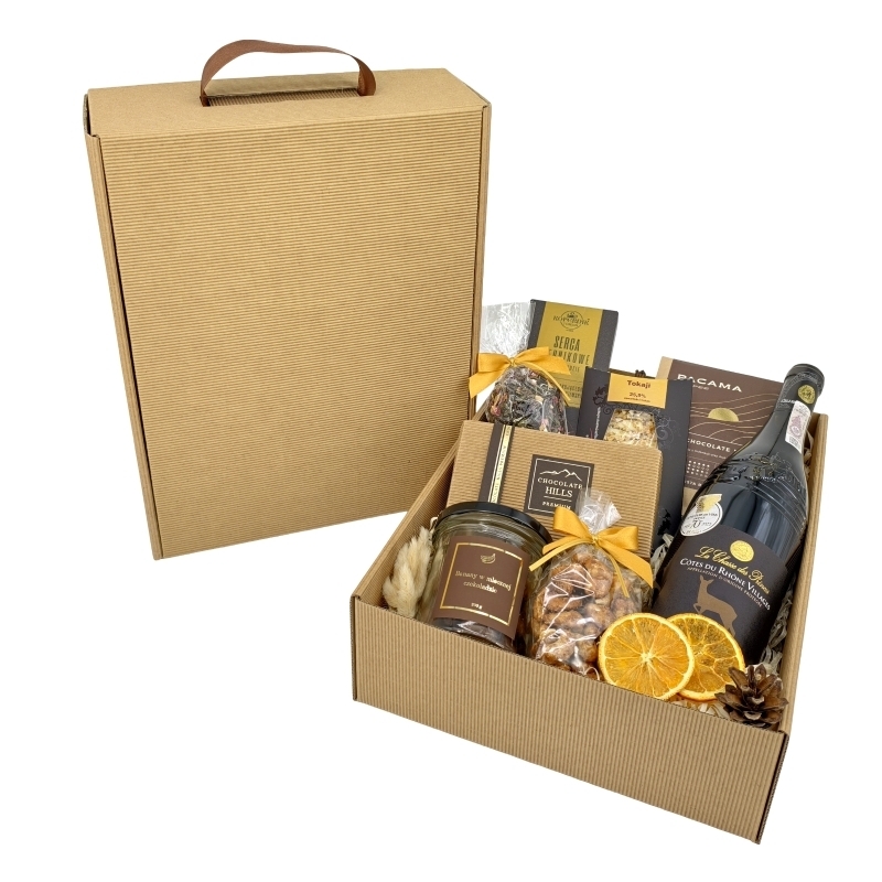 Migoczące Światełko to bogaty zestaw upominkowy, który łączy francuskie wino Côtes-du-Rhône Villages, aromatyczną kawę Dark Chocolate Blend oraz ekskluzywną czekoladę od mistrza cukiernictwa. Idealny dla osób ceniących wyjątkowe kompozycje smaków, ciepło domowego ogniska i migoczący blask świątecznych światełek.