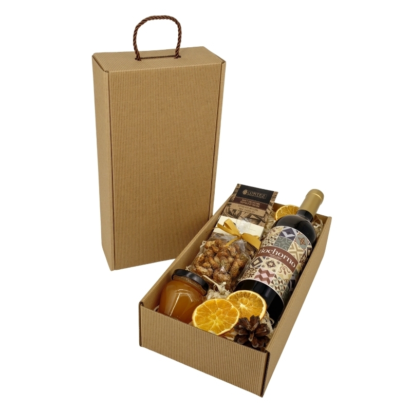 Miodowy Przysmak to harmonijny zestaw upominkowy, który łączy hiszpańskie wino czerwone, naturalny miód oraz wyrafinowaną czekoladę. Idealny dla osób ceniących miodowe aromaty, naturalne smaki i słodkie chwile przy kominku.