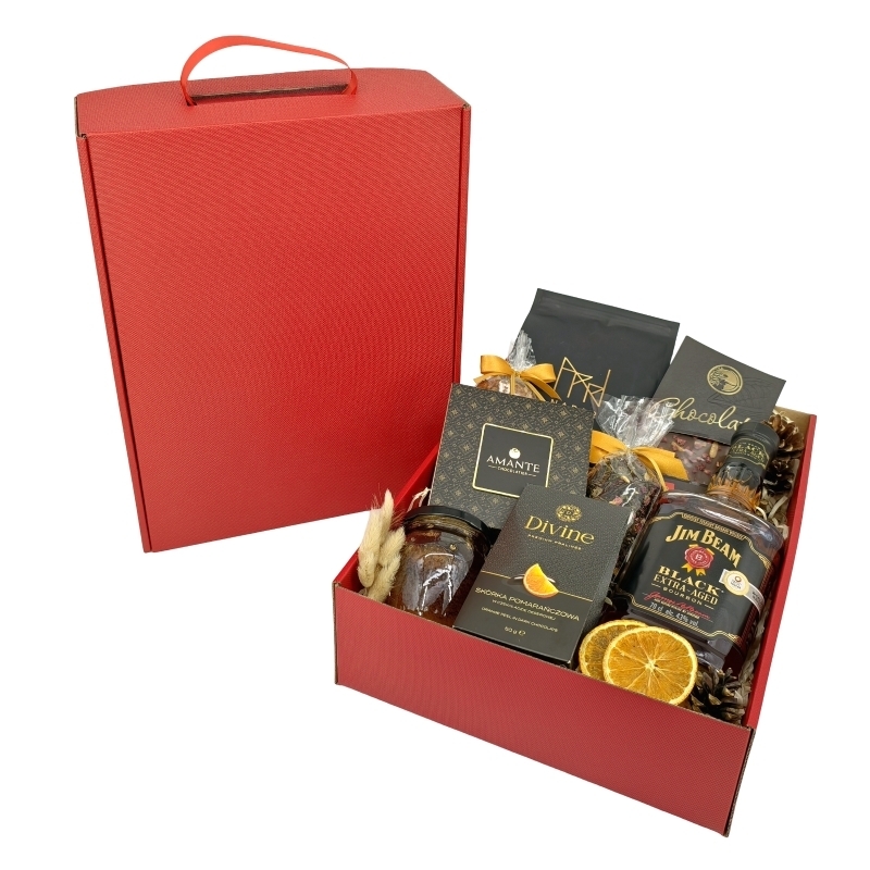 Mroźny Świt to elegancki zestaw upominkowy, który łączy amerykańską whiskey bourbon Jim Beam Double Oak, luksusowe praliny oraz naturalny miód malinowy. Idealny dla osób ceniących prestiżowe alkohole, delikatne smaki i spokojne poranki w zimowej atmosferze.