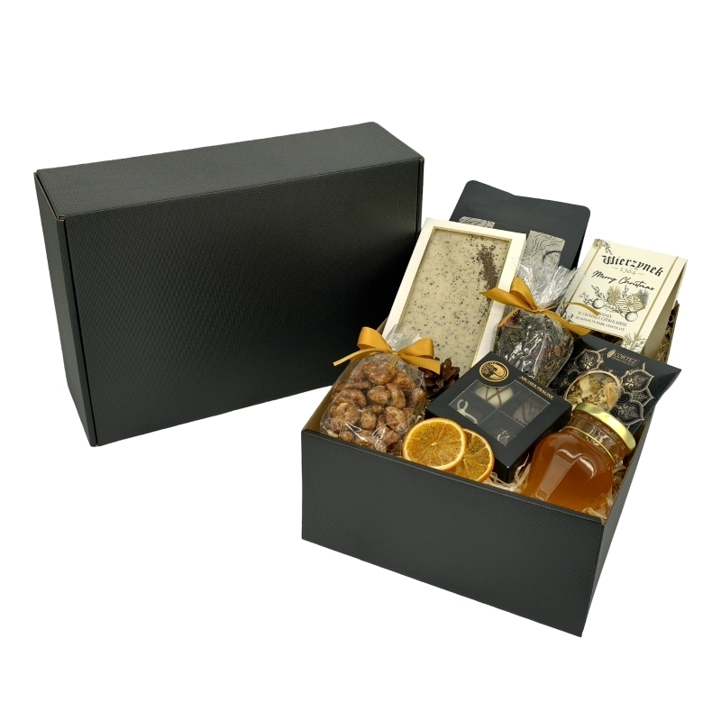 Pachnący Poranek to elegancki zestaw upominkowy, który łączy intensywną kawę brazylijską, ręcznie produkowane praliny oraz naturalny miód. Idealny dla osób ceniących aromatyczne poranki, wyrafinowane czekolady i chwile relaksu przy świeżo parzonej kawie.