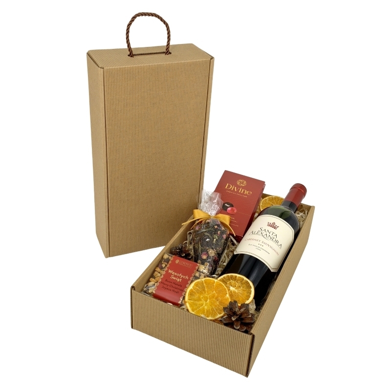 Srebrny Płomień to wyrafinowany zestaw upominkowy, który łączy chilijskie wino Cabernet Sauvignon, intensywną czekoladę oraz aromatyczną herbatę. Idealny dla osób ceniących wytrawne smaki, elegancję i ciepły blask płomienia w srebrnej atmosferze.