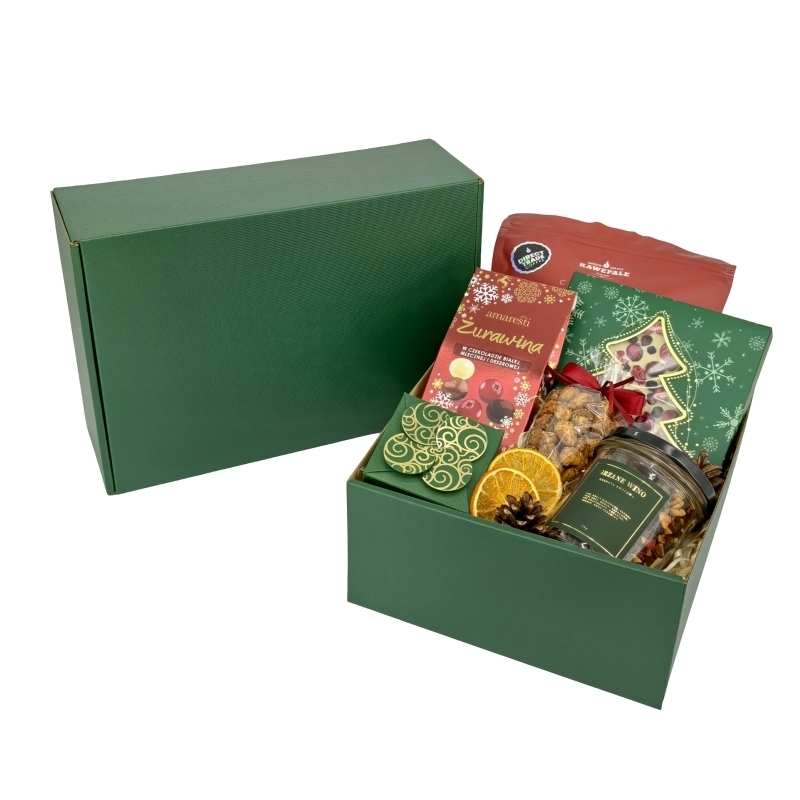 Świąteczne Brzmienie to wykwintna kompozycja słodkości, wyjątkowej kawy i owocowej herbaty, które harmonizują niczym dobrze zgrany świąteczny koncert. Idealny wybór dla tych, którzy cenią wyraziste nuty smakowe i elegancką formę podania.