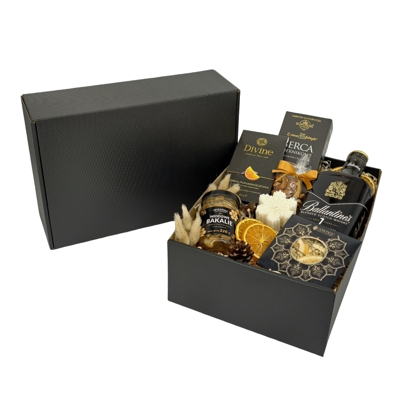 Szlachetny Aromat to prestiżowy zestaw upominkowy, który łączy szkocką whisky, intensywne czekolady oraz naturalne miodowe bakalie. Idealny dla koneserów ceniących szlachetne alkohole i wyrafinowane smaki w zimowej atmosferze.