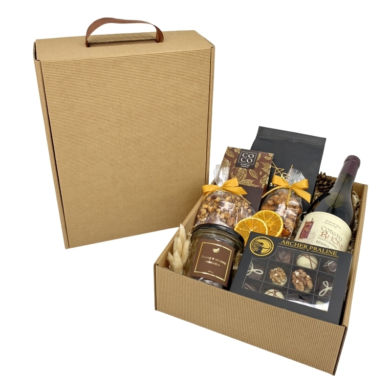 Wieczorna Poezja to wyrafinowany zestaw upominkowy, który łączy francuskie wino Côtes du Rhône, brazylijską kawę oraz luksusową bombonierkę z 12 ręcznie produkowanymi pralinami. Idealny dla osób ceniących poetyckie wieczory, harmonijne kompozycje smaków i spokojną atmosferę przy lampce wina.